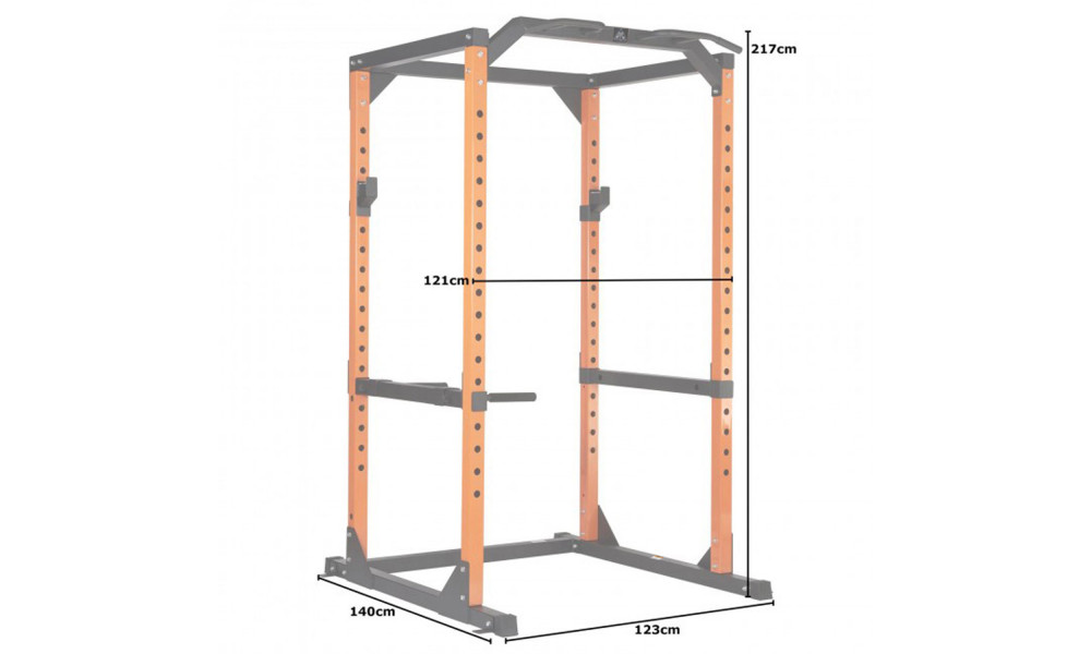 Рама стойки изготовлена из высококачественного стального профиля. Размер 60х60 мм. Порошковая покраска рамы в черно - оранжевый цвет. Резиновые ножки для надежной установки на полу. Не царапают поверхность. По углам тренажера предусмотрены пластины для крепления к полу (крепеж приобретается отдельно).